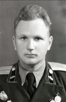В годы войны: - командир батареи 133-го самоходного артиллерийского полка, капитан.