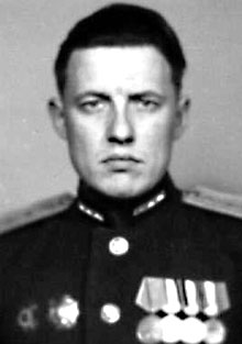 Из наградного листа: "При прорыве оборона противника на р. Друть 24.6.44 года своей батареей подавил 2 сильно укрепленных узла сопротивления и рассеял скопление танков, тем самым обеспечил возможность продвижения нашей пехоты вперед. При прорыве обороны противника на р. Западный Буг 21.7.44 года своей батареей подавил узел сопротивления и батарею противника".